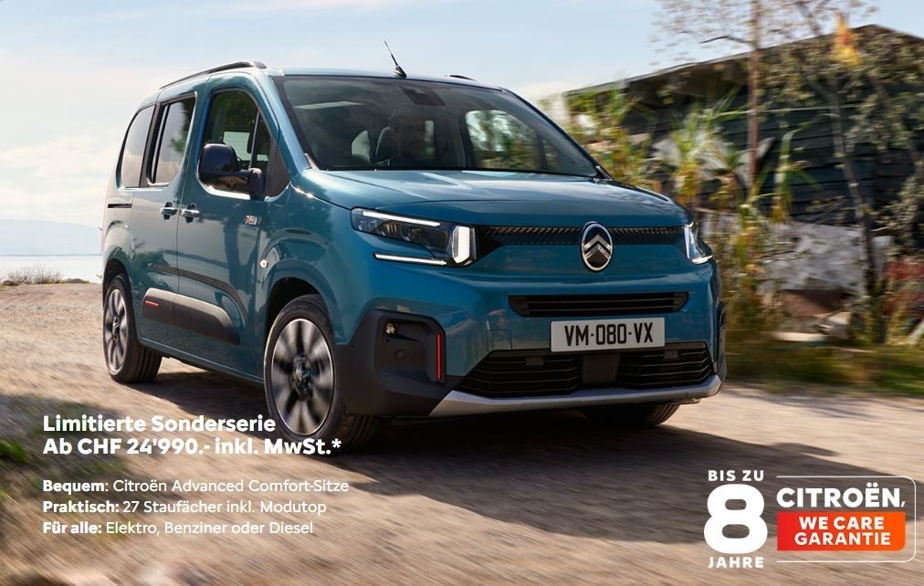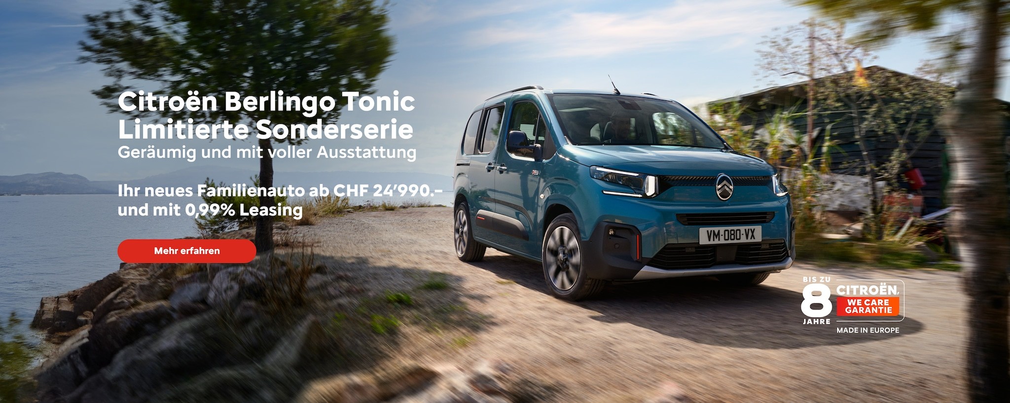 Entdecken Sie die limitierte Sonderserie Tonic beim Citroen Berlingo. Ein Fahrzeug bereits ab 24’990.- mit 5 Jahren Garantie und attraktiver Sonderausstattung! Bis 7 Plätze und mit Automatikgetriebe ist alles möglich. Wir haben diverse Modelle in unterschiedlichen Farben sofort verfügbar ab Lager.